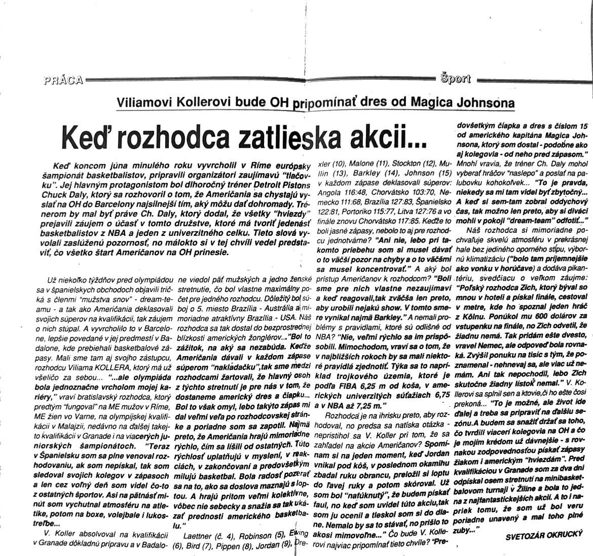 - rozhovor z denníka Šport o účasti na OH v Barcelone
